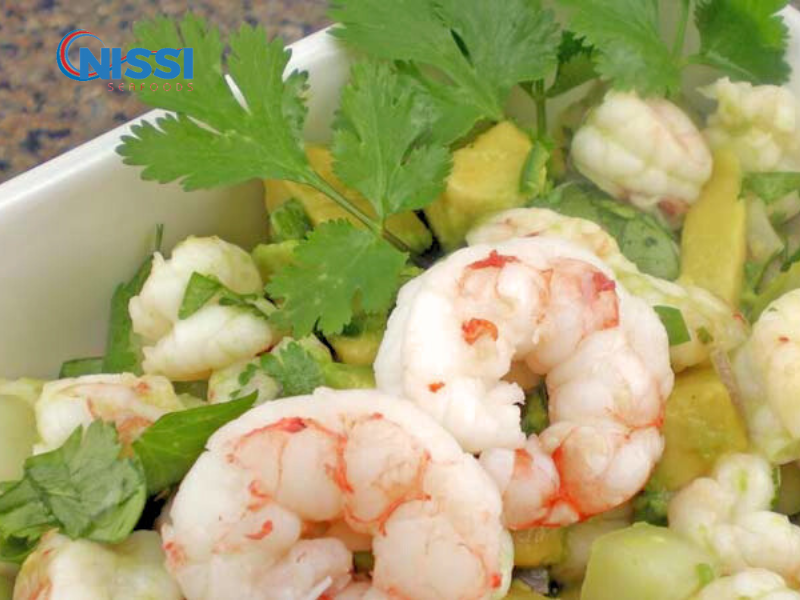- สะเด็ดน้ำกุ้ง จากนั้นหั่นกุ้งเป็นชิ้นพอดีคำ โดยเก็บกุ้งตัวใหญ่ไว้สำหรับตกแต่งจาน วางกุ้งที่หั่นแล้วในชามแก้วหรือเซรามิก ใส่น้ำมะนาวและน้ำเลมอนลงไป คลุมด้วยพลาสติกแรปแล้วแช่ตู้เย็นประมาณครึ่งชั่วโมง