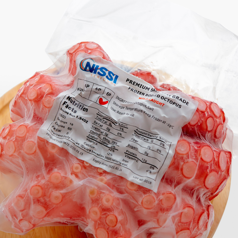 ปลาหมึกยักษ์จะถูกบรรจุและสุญญากาศตามขั้นตอนการควบคุมสุขอนามัยที่เข้มงวด
